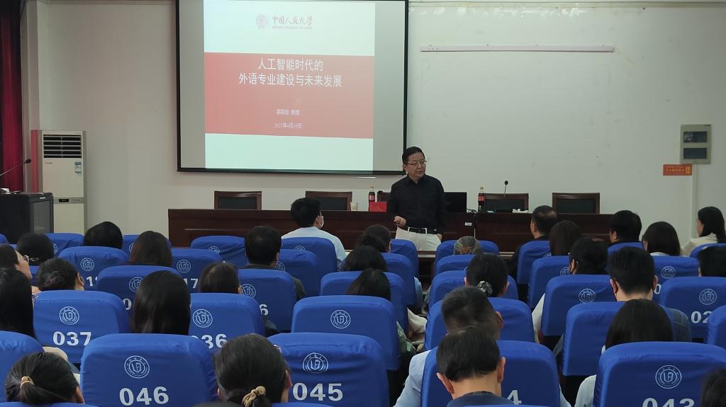 4月10日下午,应外国语学院邀请,中国人民大学郭英剑教授在我院302会议室作了一场题为“人工智能时代的外语专业建设与未来发展”的专题讲座。本次讲座由外国语学院副院长贺剑瑜主持,80余名师生到场聆听。
