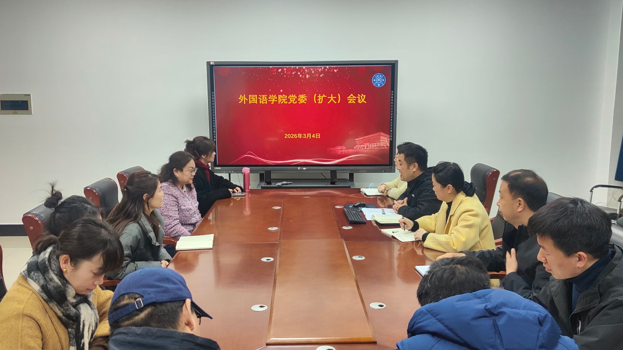 3月4日,外国语学院党委召开党委扩大会议,专题研究部署树立和践行正确政绩观学习教育工作。学院党委书记陈朝魁主持会议,学院党委委员、全体科级干部参加会议。