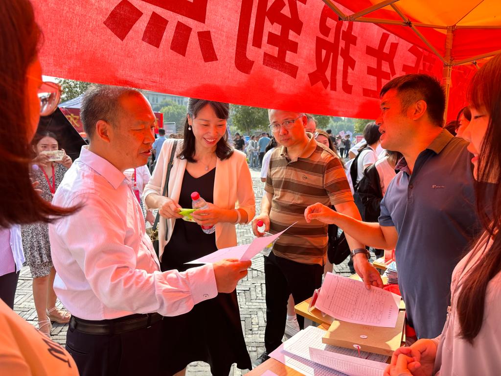 期间,我校副校长赵邦屯,研究生处处长苏小燕,副处长谭勇刚莅临迎新现场指导工作,询问学院新生报到情况。我院党委书记李广、党委副书记陈朝魁到现场了解报到进展,同时十分关切工作人员在高温下的身体状况。我院2023级研究生新生陆续报到,并在我院设立的新生打卡点拍照留念,用镜头记录下和外院初次见面的瞬间。