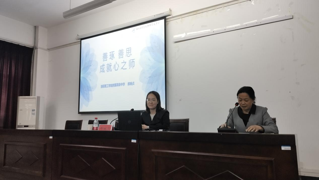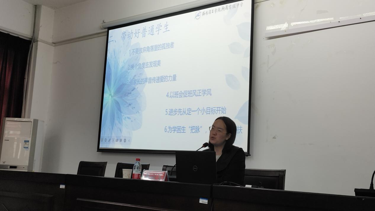 讲座中,郝校长首先介绍了洛阳理工学院附属高级中学的概况,勉励同学们努力夯实专业素养,欢迎同学们毕业后到该校就职任教,为自己的职业成长找到好的发展平台。接下来,郝校长分享了她个人专业成长的经历和心得体会,鼓励同学们加强专业理论学习,积极为自己的专业成长做出科学合理的计划,主动寻找发展机遇,敢于吃苦,笃定前行,不断自我雕琢。