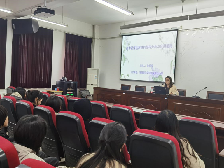 按照学院“中学名师进课堂”系列讲座安排,2023年11月3日下午,洛阳理工学院附属高级中学朱玲玲老师在学院302会议室做了题为“高中新课程教材的结构分析与应用策略”的主题讲座,讲座由副院长刘启成主持,英语教法教研室部分教师和英语专业学生参加了此次讲座。