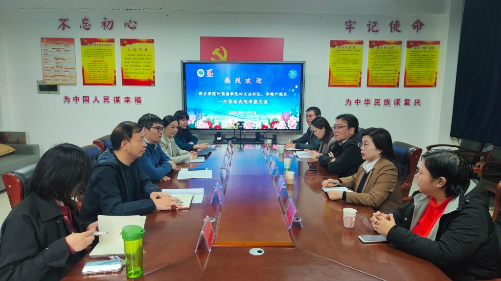 11月8日下午,新乡学院外国语学院党委书记田大治、院长李艳叶等一行6人莅临我院考察交流师范类专业认证工作,学院党委书记李广、副院长贺剑瑜、副院长刘启成、英语系主任郭晓静,团委书记赵娟娟等参加了交流会。