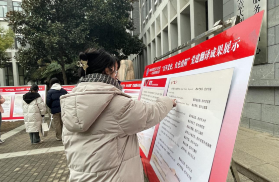 在项目展筹备期间,广大党员注重发挥翻译学科专业优势,教师精心指导选题,学生广泛参与,将党建元素充分融入业务中,将师生思想素质提升与专业能力培养紧密结合,做到双融合、双促进。这些探索和尝试,不仅是基层党建形式上的创新,也是翻译专业学习实践的一种尝试,是讲好党的故事、重温历史脉络的生动实践。