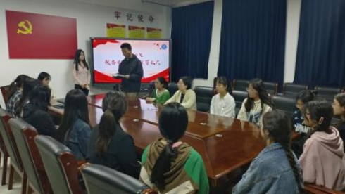 4月11日下午,我院党委于外语楼504会议室举行预备党员入党宣誓仪式。学院党委副书记贺然、学院党委组织员尚瑞雪及新发展的预备党员参加会议。