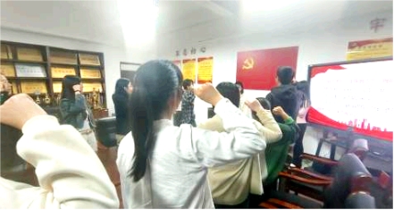 “我志愿加入中国共产党,拥护党的纲领,遵守党的章程,履行党员义务……”在领誓人的带领下,预备党员面向党旗,高举右拳庄严宣誓,在铮铮誓言中表达坚定不移听党话、跟党走,为共产主义奋斗终身的信念和决心。仪式上,新老党员代表代梦洋和王栋灿分别进行发言,他们表示,要与时俱进,加强政治理论学习,认清定位,严格要求自我,以身作则,树立良好形象。在学习和工作中奉献进取,以良好的精神状态和充足的劲头,以实际行动践行入党誓词。