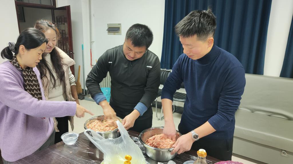 活动室内,到处洋溢着喜庆祥和的氛围。长长的桌子上,摆满了面粉、馅料、各式调料以及包饺子所需的工具;老师们齐聚一堂,揉面、切菜、调馅、擀皮、包制,大家自然分工,或三五成群,或两两合作,现场欢声笑语不断,气氛温馨而热烈。在生活的“大课堂”上,老师们各展其能:有的手法娴熟,擀出的饺子皮又圆又好,包出的饺子形状各异;有的则是初次尝试,虽略显笨拙却乐在其中。在包饺子过程中,老师们不仅交流了各自的包饺子技巧,还分享了各自家乡的冬至习俗和温馨的家庭故事,进一步加深了彼此之间的了解和友谊。不少老师表示,这样的活动让他们感受到了家的温暖,也让他们更加珍惜在外国语学院这个大家庭中的每一天。