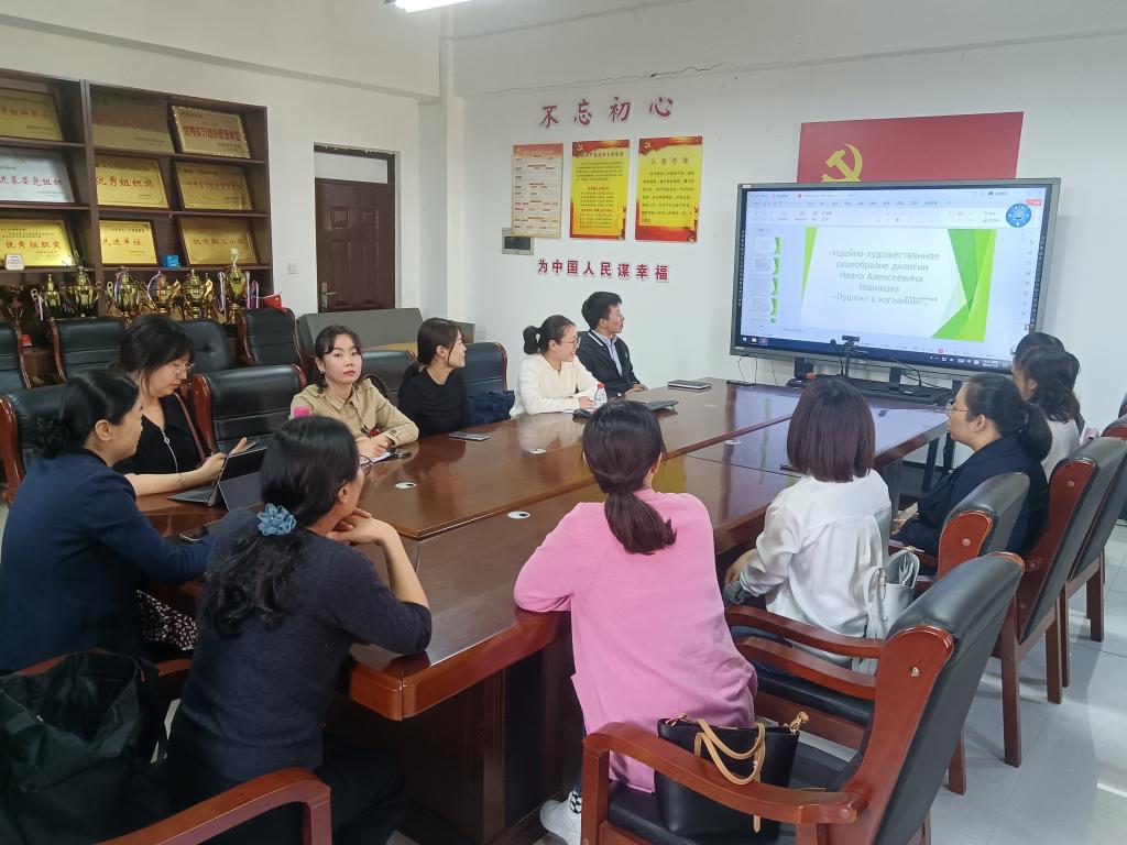 11月2日下午,我院在504会议室举行“博士论坛”第10期。本期由张静娜博士作“伊万·阿列克谢耶维奇·诺维科夫的二部曲《普希金在流放中》的思想艺术独特性的研究”讲座。讲座由贺剑瑜副院长主持,我院博士及正在攻读博士学位的老师参加了此次讲座。