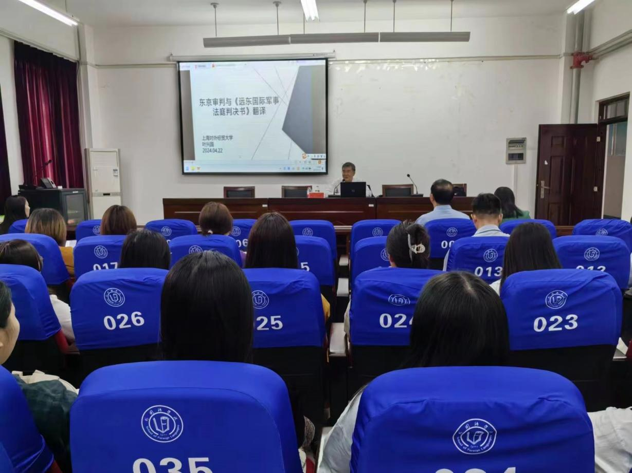 4月22日下午,我院邀请上海对外经贸大学原副校长叶兴国教授在302会议室做题为“东京审判与《远东国际军事法庭判决书》翻译”的学术讲座,讲座由贺剑瑜副院长主持,我院70余名师生参加了此次讲座。