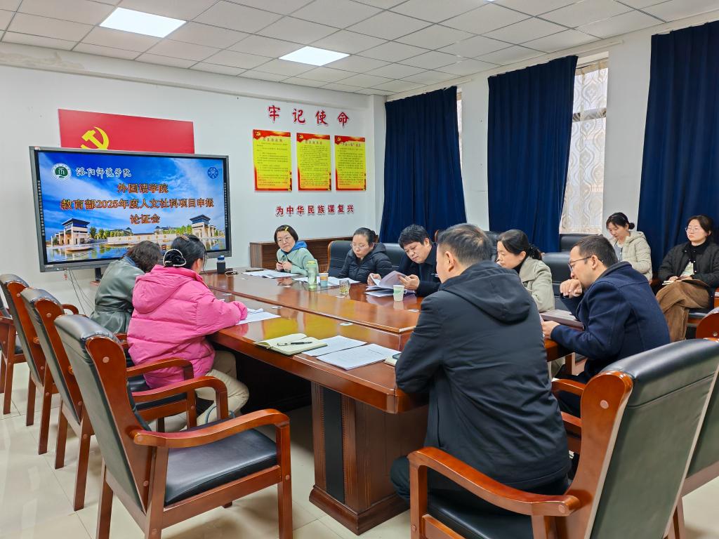 为深入推动教育部人文社科基金项目申报工作的有序开展,着力提升申报项目的整体质量,我院于3月6日下午在A1-504会议室举办了2025年度教育部人文社科基金项目申报专家论证会。此次论证会特别邀请了校人事处处长陆志国教授,科研处副处长李竞强副教授以及我院王秋霞博士、李珺博士作为论证专家出席,外国语学院副院长贺剑瑜主持论证会。