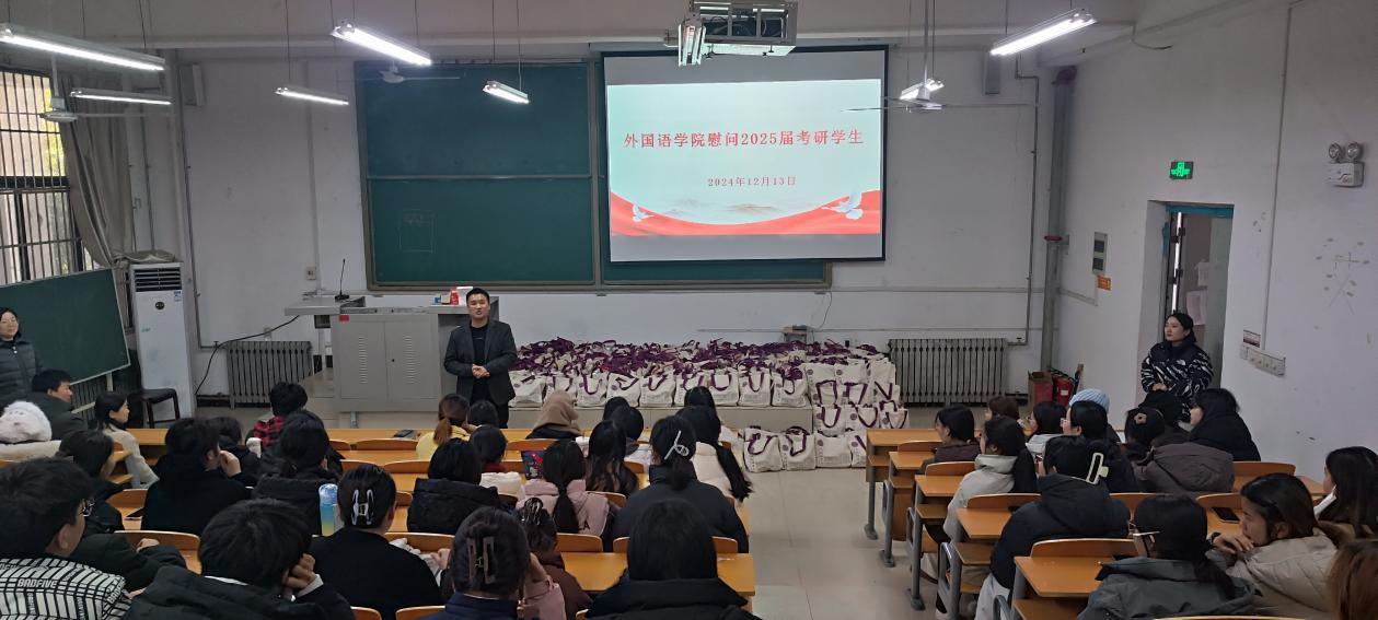 为进一步鼓舞考研学子士气,缓解备考压力,坚定考研冲刺信心,12月13日,我院在A1-101教室举行考研慰问活动。学院领导班子、毕业班辅导员及2025届考研学生150余人参与活动,活动由学院党委副书记贺然主持。