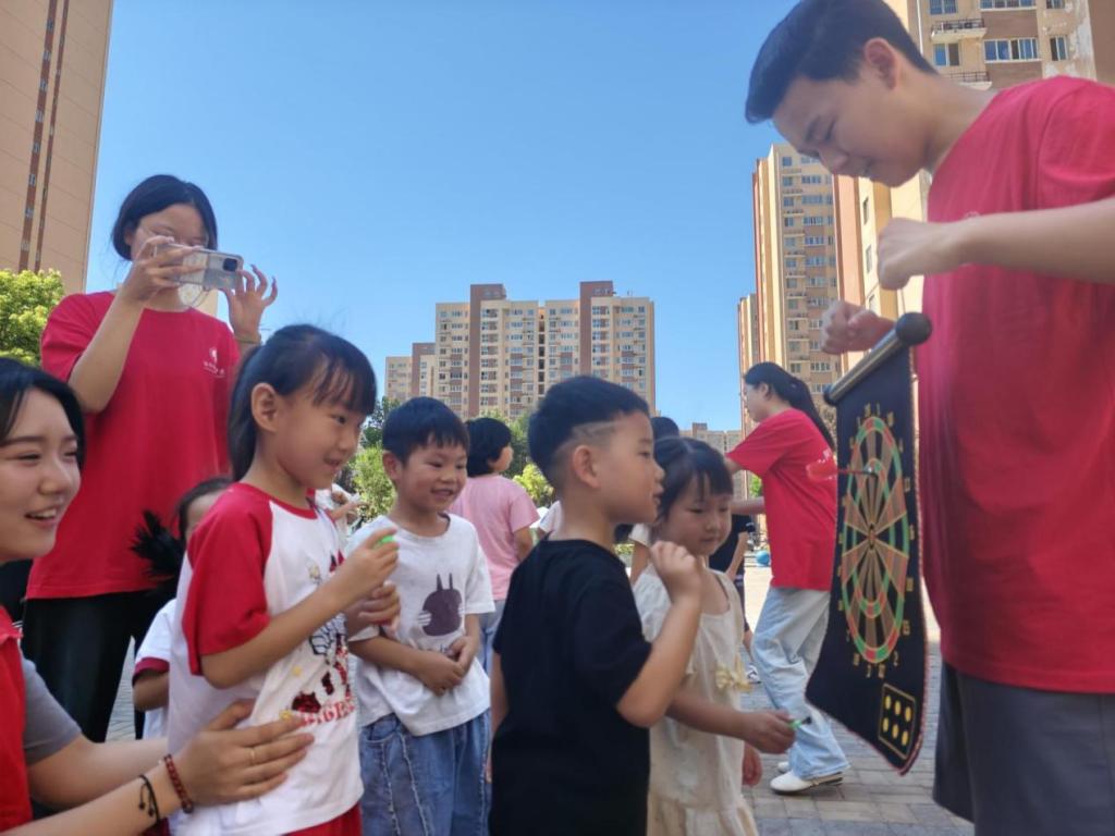 近日,洛阳师范学院“语·未来”暑期实践队在洛阳市伊滨区申明社区举办了一场别开生面的“传统游戏嘉年华”。投壶、踢毽子、夹弹珠、射飞镖等传统游戏轮番登场,孩子们在欢声笑语中感受传统文化的魅力,一张张绽放的笑脸成为社区最动人的风景。