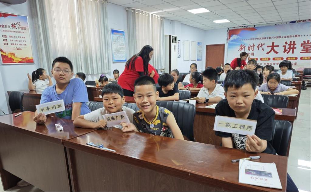 图为孩子们通过职业角色扮演了解洛阳工业企业的发展