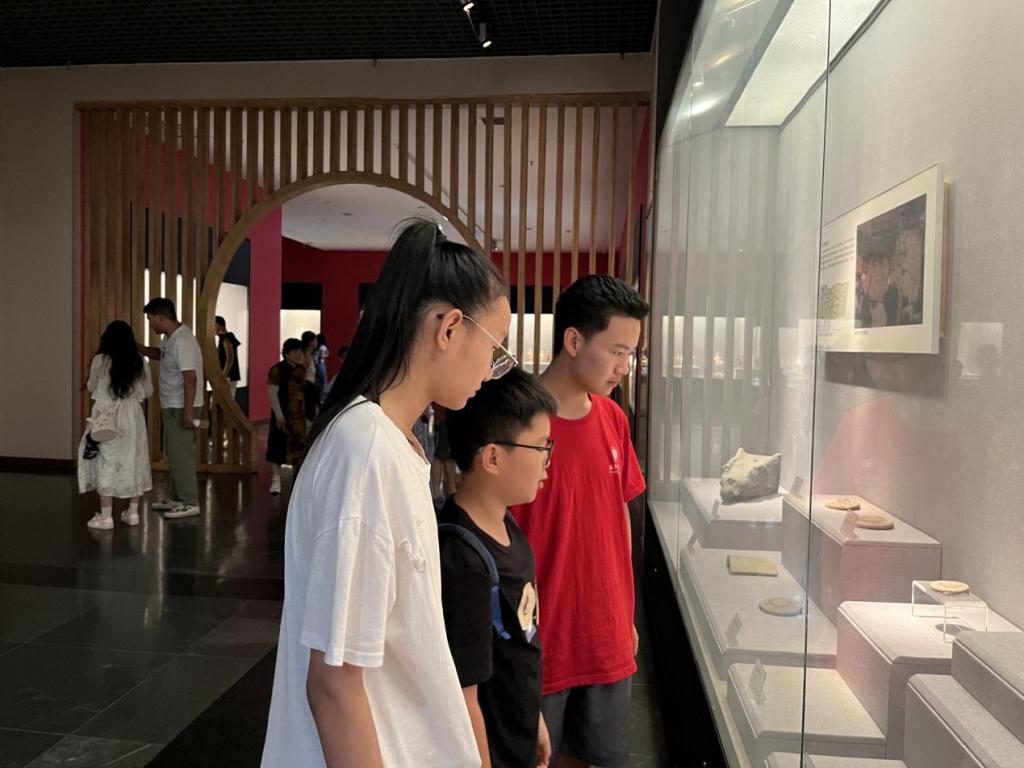 图为实践队员带着孩子们在洛阳博物馆对文物进行实地寻溯