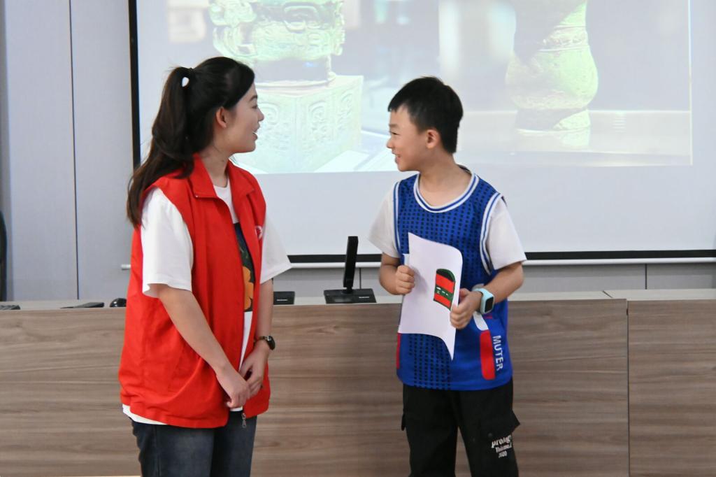 “老师,今天我记住了white,red,blue好多英语单词,那些文物也很有意思。周末我要让妈妈带我去洛阳博物馆,我要给她当小小讲解员。”小朋友姬浩天对实践队员说道。兴趣是最好的老师,孩子们的心灵如同一颗颗种子,根植于中华大地丰厚的文化土壤,吸收阳光、雨露,一定能够绽放出绚丽多彩的花朵!
