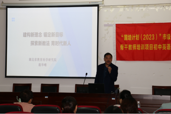 2023年10月15号上午,教育部基础教育外语教学指导专业委员会委员、湖北省教育科学研究院教育教学评价研究室主任扈华唯老师为“国培计划(2023)”市级初中英语骨干教师作了题为《建构新理念 锚定新目标 探索新教法 育时代新人》的讲座。