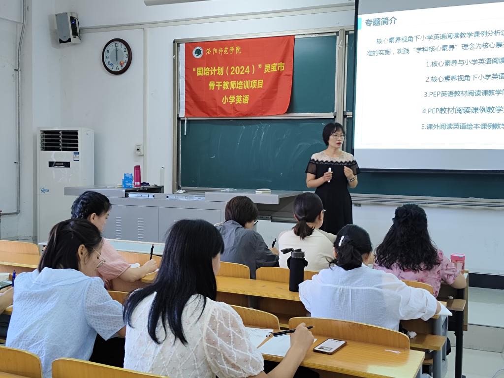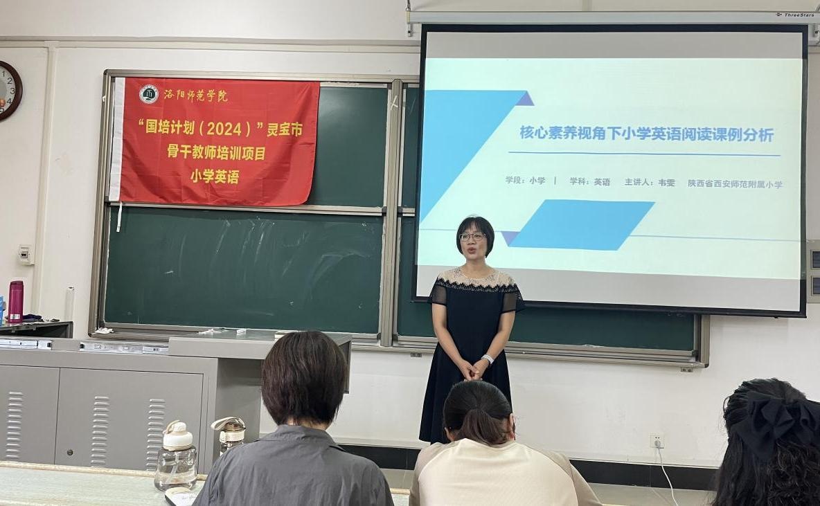 2024年8月15日上午,来自陕西省西安师范附属小学的韦雯老师为灵宝市骨干教师学员带来《核心素养下小学英语阅读课例分析》的专题培训。这场培训既有扎实的理论基础,又有生动的课例展示,还有积极的互动环节,让学员受益匪浅。韦老师以深厚的专业知识为支撑,深入浅出地带领大家以新课标为出发点,把握学科的改革方向。在课例展示中,韦老师巧妙地运用图片巡游法,激发学生的学习兴趣;通过有效的提问和引导,培养学生的思维能力,以读促说,以读促写,说写结合,提高学生的学习能力。这些课例为学员今后的教学提供了宝贵的参考和借鉴。