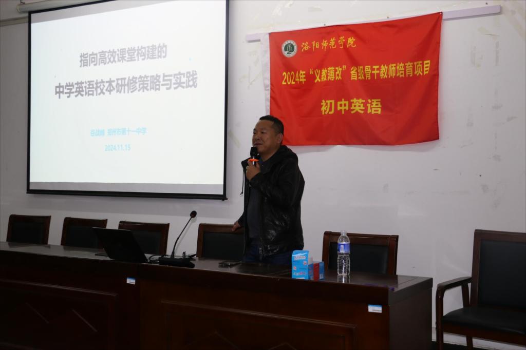 2024年11月15日, 郑州市第十一中谷战峰老师为参训学员做了题为《指向高效课堂构建的中学英语校本研修策略与实践》的专题讲座。针对高效课堂的构建,谷老师从精心设计教学目标,优化教学设计,营造课堂氛围,运用现代化教育技术,加强课堂管理,注重教学反馈以上六个方面做了详细介绍;关于如何进行校本研修,谷老师主要从以下几个方面做了详细的讲解:确定教研主题,组织教研活动,制定教研计划,评价研修效果。谷老师结合具体的案例,深入浅出的为参训学员介绍了校本研修的意义及具体操作步骤。最后,谷老师指出了教研、教学、育人等方面存在的问题:教研内容缺乏体系,教研为大家做了分享。谷老师的讲座,在与学员的互动中,在掌声与心灵共鸣中,我们共同更新了观念,提升了境界。
