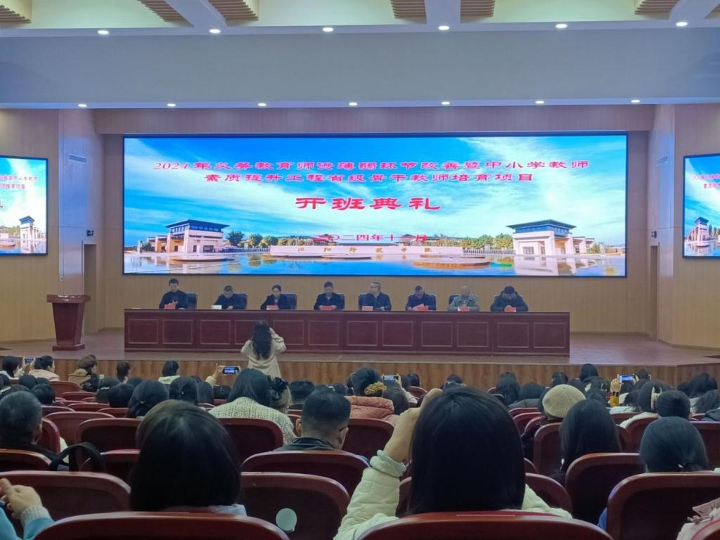 由洛阳师范学院承办的2024年河南省义教薄改工程省级骨干教师培育项目于11月29日上午在G1-112举行开班典礼。洛阳师范学院副校长曹玉涛、继续教育学院党委书记何健、各承训单位负责人以及400余名参训教师参加了开班典礼。