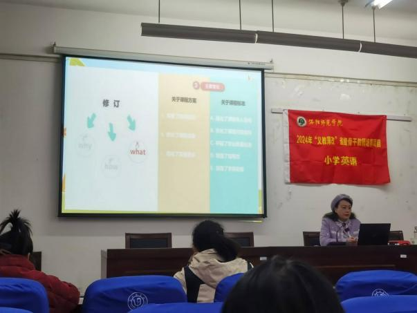 2024年12月8日上午,来自湖北省武昌水果湖第一小学的白云老师为参训学员带来了题为《核心素养引领课堂教学转型——我们为未来而教》的专题讲座。白云老师结合自身二十余年一线教学经验分享了小学英语教育和教学创新的思路,展示了多种小学英语教具制作、课堂教学方法和吸引孩子们的教学活动。她指出,可以巧借音乐,将“英语教学”转向“英语教育”;也可以活用游戏,把“有意义”的事情做得“有意思”。白老师向学员展示了创编的英文歌曲、绘本故事、小常识等趣味活动,充分体现了学科育人。