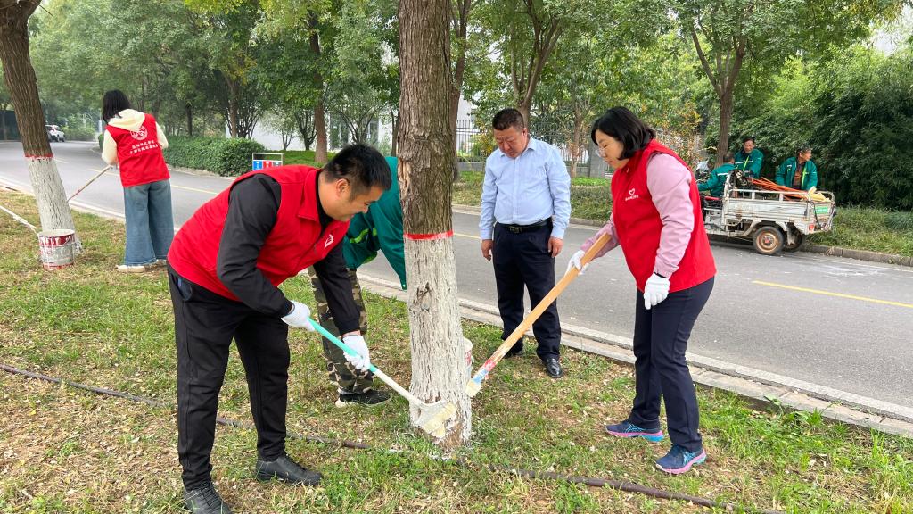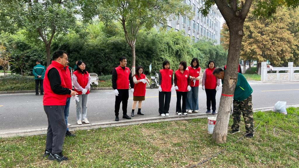 为美化校园环境,减轻学校绿化养护工人的工作负担,提高树木防寒防虫能力,确保树木健康过冬,10月30日下午,外国语学院教工第三党支部与后勤处共同开展“为树添新衣”志愿服务活动。