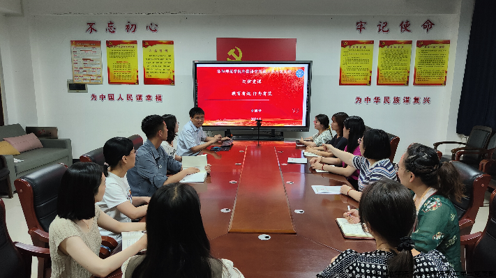 近日,外国语学院教工第三党支部,根据上级党委要求,认真学习新修订的《中国共产党纪律处分条例》,支部书记步国峥讲授了一堂纪律党课,题为《教育有规,行为有范》。深入剖析了党的各项纪律,对教师的教学,科研以及个人行为的要求,心中要紧绷一条线,不去跨越红线,做到兢兢业业教书,堂堂正正做人;此外,分享了近期教育系统出现的腐败案件以及师德师风等问题。