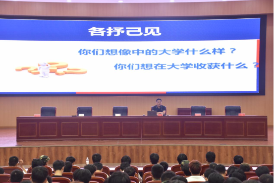 彭枫首先介绍了学院历史、专业设置、师资队伍,明确了学院在人才培养、学术研究等方面的优势,重点围绕“为什么要上大学?”“想象中的大学什么样?”“在大学里学什么?”等一连串直击心灵的提问,从认知我的大学、适应我的大学、我的大学能力等三个方面向新生提出了科学规划大学生活、树立崇高理想信念、励志成长成才的大学发展目标与期望。