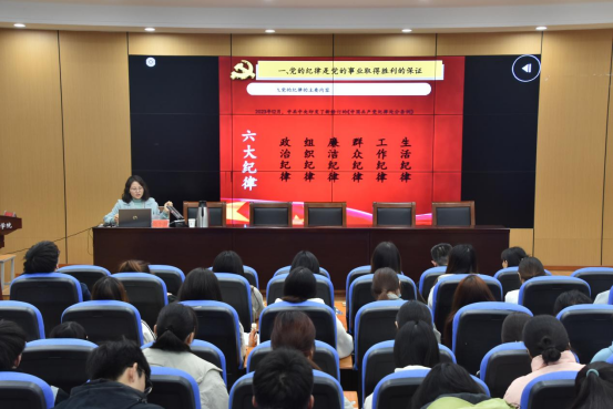 11月8日晚,我院党委副书记高小静以《严守党的纪律,发扬党的作风》为主题在物理楼102报告厅讲授党课,我院及化学化工学院110余名入党积极分子和预备党员参加培训。