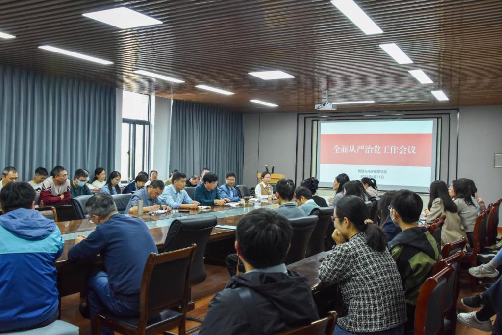4月11日,我院在物理楼305召开2024年全面从严治党工作会议。学院全体教职工参加会议,会议由党委书记席明旺主持。