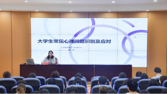 5月9日,我院在物理楼报告厅举办以《大学生常见心理问题识别与应对》为题的心理健康教育专题讲座。学校心理健康教育与咨询中心潘苏老师主讲,学院辅导员和学生干部参加培训。由学院党委副书记赵佳主持。