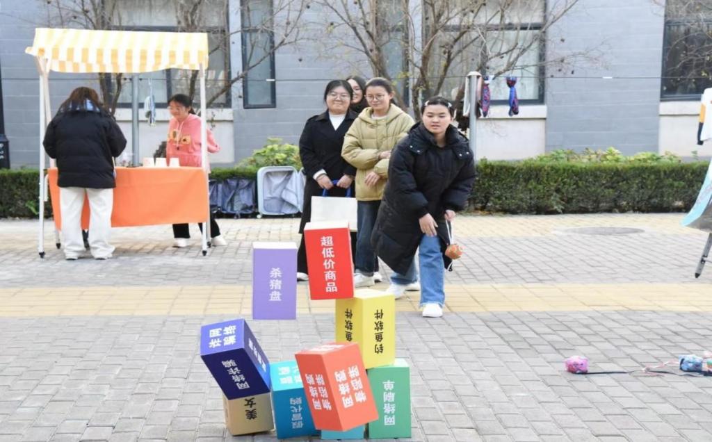 趣味教育防诈骗活动主要包括反诈我“沙”手和反诈华容道等环节。同学们将反诈警示语句写在便利贴并贴到反诈墙上完成签到,反诈“沙”手手拿沙包扔向对面以“网络诈骗”“电信诈骗”“刷单诈骗”等命名的箱子中,其中有防诈骗宣传知识。在反诈华容道环节中,同学们需将玩偶模型在各类诈骗风险的包围下成功运送出迷宫。以游戏的方式,让同学们沉浸式了解各类诈骗陷阱和防范知识,进一步增强学生防骗意识,做到慧眼识骗,保护好自己的钱袋子。