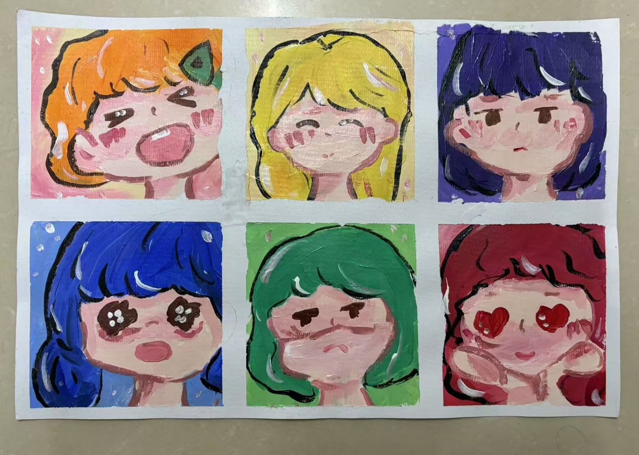 绘画过程中,参与者将情绪分为开心、难过、愤怒等板块,进行情绪宫格的绘画创作,同学们充分发挥想象力,用画笔将内心情绪具象化,创作出一幅幅风格各异、情感饱满的作品。收集作品后,立雪书院学生社区心理健康中心结合作品的创意性、表现力以及对情绪的精准表达,从众多作品中精心筛选出一批优秀作品,并将评选出的优秀作品精心布置,进行集中展示,吸引了众多师生驻足观赏。