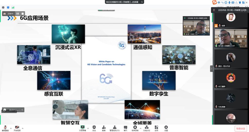 2022年11月13日,河南理工大学李兴旺教授应邀为我院师生带来了一场题为“面向6G的无源通信技术”的学科前沿与专业建设报告。本次报告通过腾讯会议在线上进行,我院电子信息工程、通信工程专业相关老师和学生参加了此次讲座。