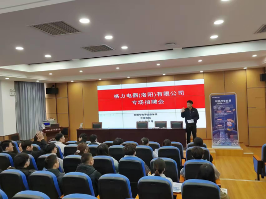 11月1日上午,我院在物理楼A11-102报告厅举办格力电器(洛阳)有限公司专场招聘会。格力电器自动化技术部部长卢中伟、人力资源部主任卢肖肖到场宣讲,电气工程及其自动化专业、自动化专业2025届应届毕业生参加。