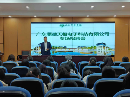 12月6日上午,由物理与电子信息学院联合立雪书院承办的广东顺德天相电子科技有限公司专场招聘会在物理楼102报告厅成功举办。广东顺德天相电子科技有限公司创始人莫凡到场宣讲,电子信息工程专业2025届毕业生参加。
