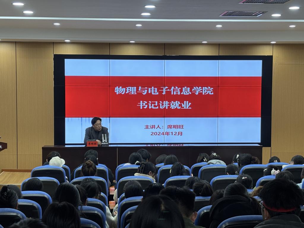 为帮助毕业生确立明晰的就业方向,培养正确的就业观念,12月4日下午,物理与电子信息学院与立雪书院联合在物理楼102报告厅举行就业专题辅导,学院党委书记席明旺作报告,部分2025届毕业生参加。