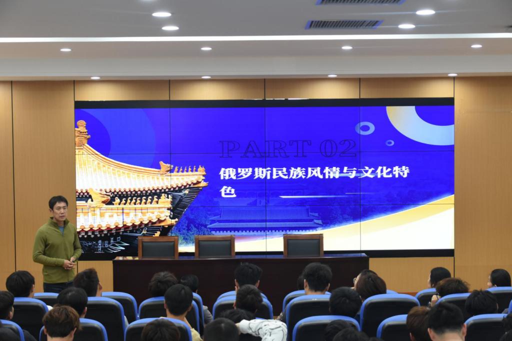 李民从个人经历、俄罗斯民俗风情与文化特色、中国文化在俄罗斯的传播与推广等多个方面给同学们将来的留学之旅做出了宝贵的经验分享。结合个人经历,他着重讲述了自己在莫斯科生活期间多年组织中俄交流活动的经历,促进了中俄文化的理解和传播,增进了两国人民的友谊。结合民族风情和文化特色,他着重介绍了俄罗斯的三大瑰宝以及俄罗斯民族的三大特点,也指出了同学们将在未来的留学生活中面临的挑战。他还重点介绍了中国儒家文化和中医文化在俄罗斯的广泛传播与影响。