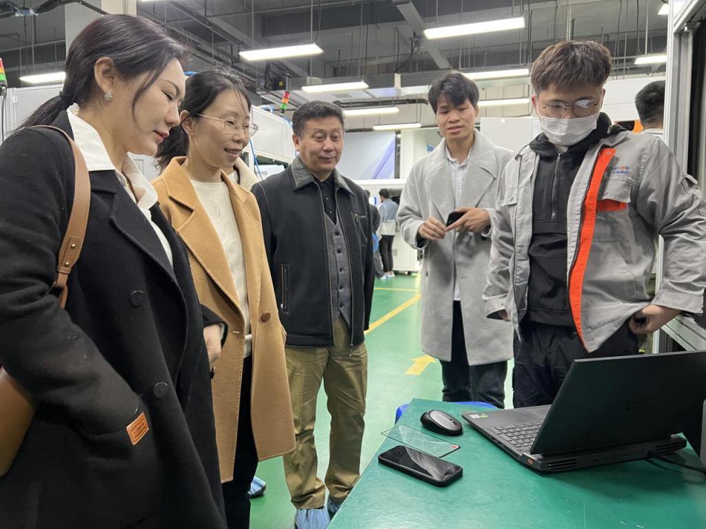 我院一行在公司应用工程部经理李高阳的带领下参观了生产装配车间和办公场所,直观感受企业文化。接着,在座谈会上,公司副总经理沈飞代表公司对学校一行的来访表示欢迎,他向大家介绍了公司的发展历程、发展前景、员工培养流程、岗位需求及往届毕业生发展情况等。彭卫民代表学院对基地近年来吸纳我院毕业生、实习生,深化校企合作工作表达了感谢,向企业调研我校在人才培养、就业服务过程中的改进之处。随后,我院2022届优秀毕业生代表钱元基表达了对母校的感恩,他结合实际讲述了自己入职以来在公司的成长状况。老师们鼓励同学们要扎根工作岗位,踏踏实实学技术,沉心静气在实践中增强对理论的认知。最后,彭卫民代表学院向中科慧远视觉技术(洛阳)有限公司授洛阳师范学院创新创业基地牌。