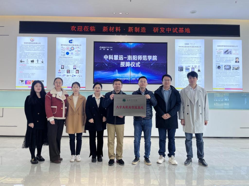3月2日上午,我院党委书记彭卫民、党委副书记赵佳、电子信息工程专业主任崔建华及辅导员李纪桥、王爽一行到中科慧远视觉技术(洛阳)有限公司考察交流,与往届毕业生座谈并在该公司举行洛阳师范学院大学生就业创业基地授牌仪式。
