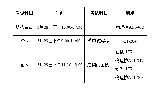 1)专业理论知识测试采用线下笔试。测试科目主要为《电磁学》科目的理论知识以及应用能力,答题时间为120分钟。同等学力需要加试科目《力学》、《光学》的理论、知识及应用能力,答题时间均为120分钟。笔试方式为闭卷考试,不得借助手机、电脑等设备通过网络搜索资料,违者以作弊处理。