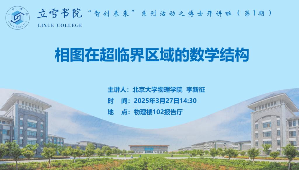 本次讲座中,李新征教授将带来前沿的学术分享。在相图领域,超临界区域常被视作均一且无相变的区域,但不同物性对热力学状态函数变化的响应行为,揭示出超临界区域存在尚不为人熟知的数学结构。李新征教授会将杨- 李理论推广至超临界区域,展示无论在临界点之上还是之下,物理量在真实物理空间中的解析性质都可由复相图中李 - 杨零点形成的场来描述。此外,还会介绍如何通过类似扩展,让杨 - 李理论用一个统一的方式来描述整个相图,为在场同学打开物理研究的新视野。