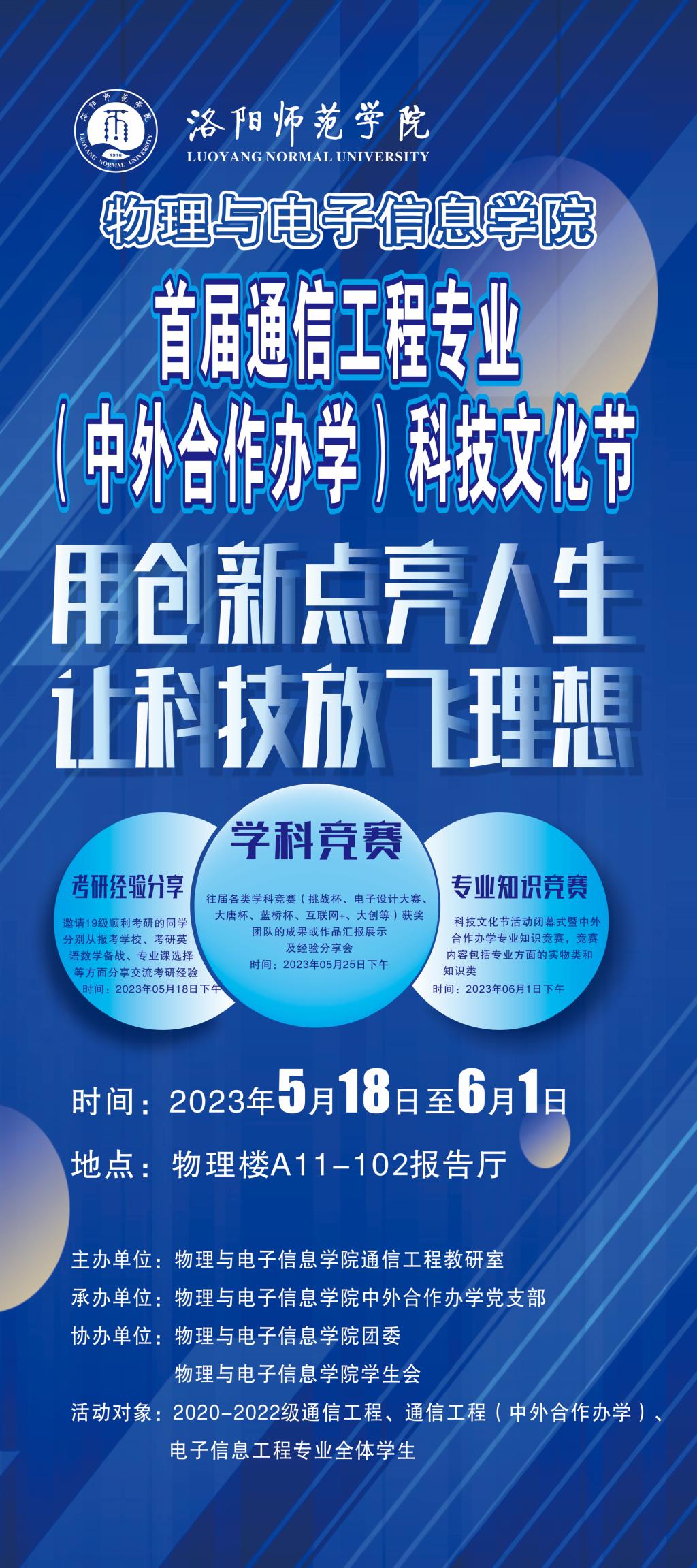 为加强学风建设,营造学院“科技创新促发展”的良好学习氛围,促进通信工程、电子信息工程专业学生的实践能力,提升通信工程专业中外合作办学效果,进一步激发学科建设活力,现开展物理与电子信息学院科技文化节活动。