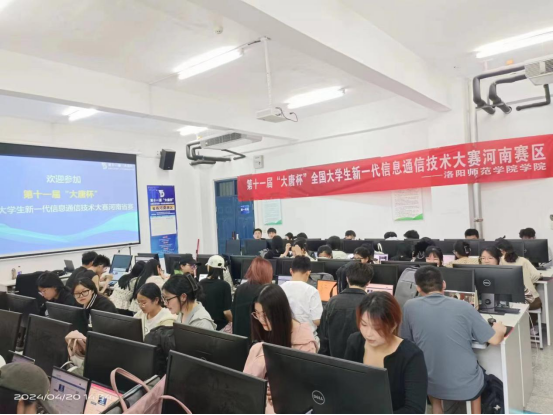 4月20日,我院2022级通信工程(中外合作办学)和21级通信工程、电子信息工程专业的学生在电子楼A12-311实验室参加了第十一届“大唐杯”全国大学生新一代信息通信技术大赛省赛。