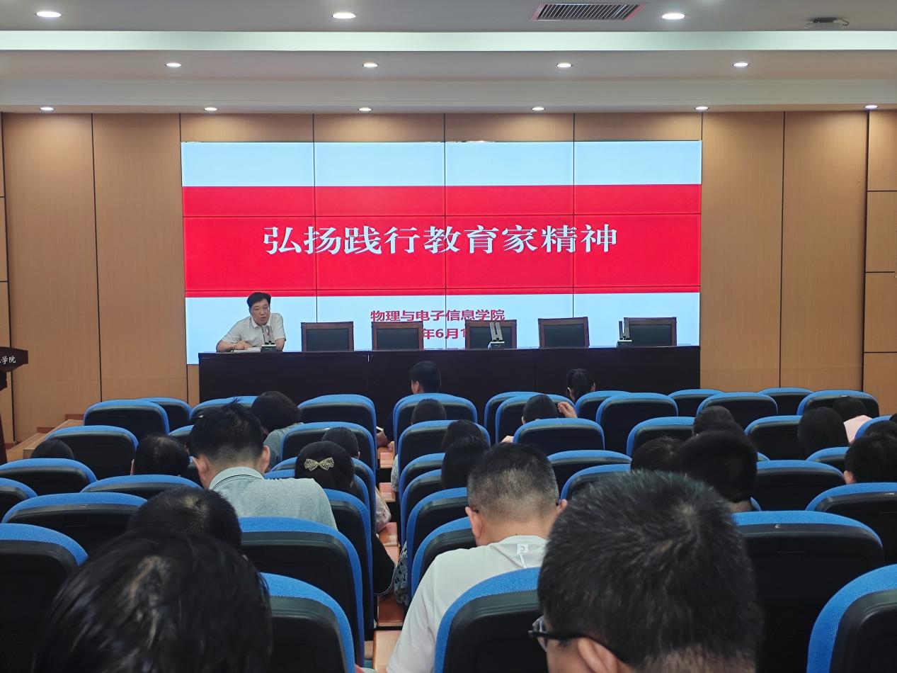 6月13日下午,我院在物理楼101报告厅开展了“弘扬践行教育家精神”主题宣讲。学院全体教职工参加会议,党委书记席明旺主持。