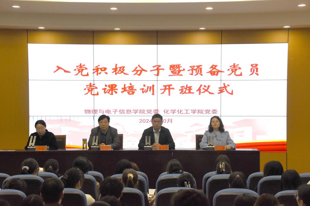 为加强对入党积极分子和预备党员的培养和教育,提升入党积极分子和预备党员的党性觉悟和政治素养。10月30日晚,我院联合化学化工学院举行2024年第2期入党积极分子暨预备党员党课培训开班仪式,112名入党积极分子和预备党员参加培训。化学化工学院党委书记骆方成、党委副书记李倩、我院党委书记席明旺、党委副书记高小静参加开班仪式。仪式由李倩主持。