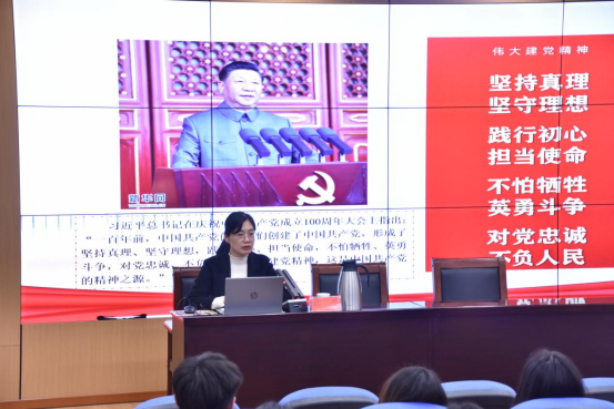 高莹围绕伟大建党精神形成的基础和条件、伟大建党精神的深刻内涵、青年如何在弘扬伟大建党精神中勇担大任三个方面,带领学员共同回顾了中国共产党人一系列救亡图存的探索及党的百年历史形成的中国共产党人精神图谱,使同学们深刻认识和把握伟大建党精神的科学内涵。她强调,实现中华民族伟大复兴的中国梦,需要一代又一代有志青年接续奋斗,新时代青年要以伟大建党精神为指引,筑牢信仰之基,不断从中汲取前进的力量,为全面建设社会主义现代化国家、实现中华民族伟大复兴中国梦贡献青春力量。