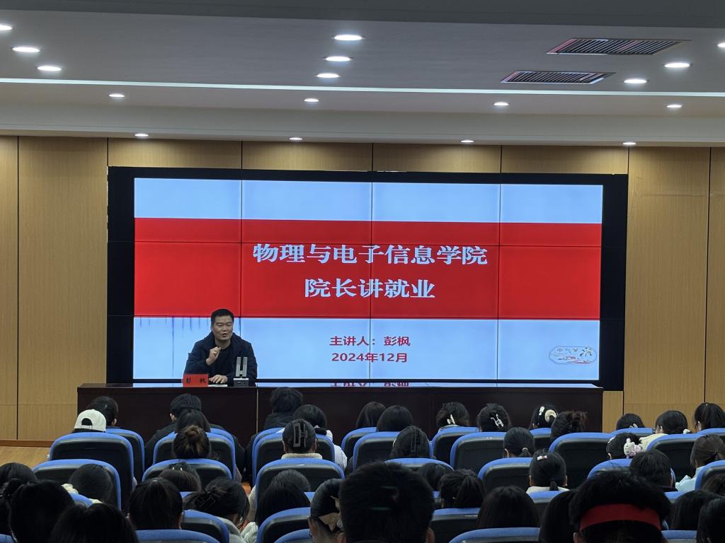 为帮助学生树立正确的就业观念,扎实推进学院就业工作高质量开展,12月4日下午,我院在物理楼102报告厅举办“院长讲就业”专题讲座,学院院长彭枫作专题报告,2025届100余名毕业生代表参会。