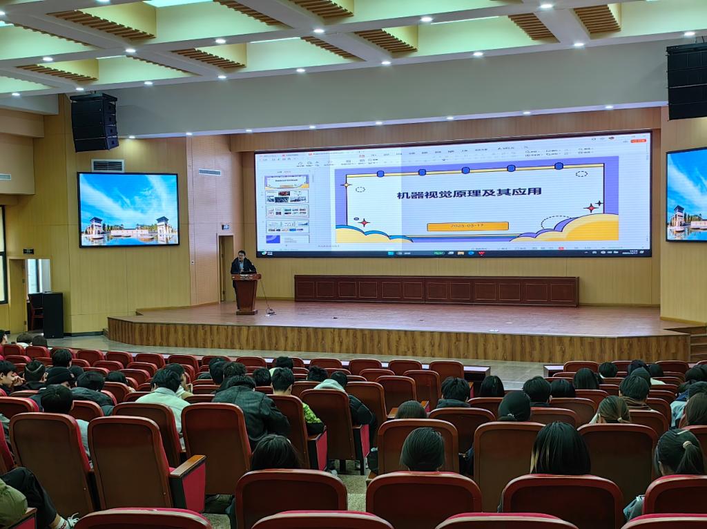 为深化产教融合发展,拓宽学生专业视野。3月17日,我院邀请中科慧远视觉技术(洛阳)有限公司技术总监孙二东在逸夫楼G1-112报告厅为2023级电子信息工程、通信工程(中外合作办学)专业近200名学生作题为《机器视觉原理及应用》的报告。