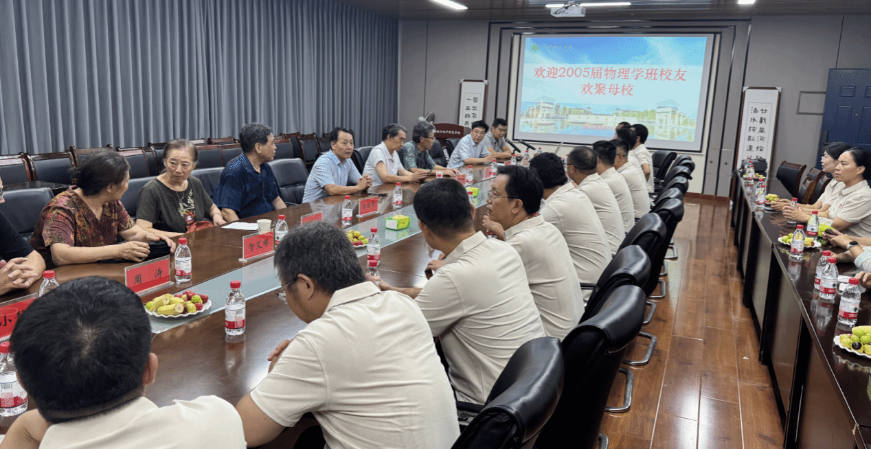 8月16日下午,我院2005届物理学班校友毕业20年荣返母校,在物理楼305召开以“廿年芳华重逢,一生母校情深”为主题的座谈会,原洛阳师范学院副校长潘留占等10余名老教师参会,大家欢聚一堂,共叙师生情谊。座谈会由学院党委书记席明旺主持。