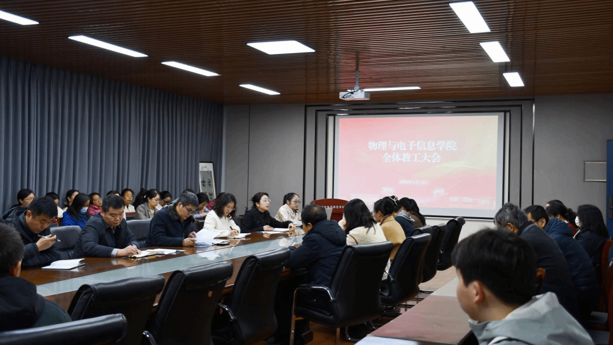 院长彭枫传达了学校2026年工作要点,结合学院学科特色与发展实际,从党建引领、学科建设、人才培养、师资队伍、科研创新、安全稳定等方面部署学院年度重点工作。他指出,学院要对标学校“双攻坚”指标,优化学科专业布局,强化物理学省级重点学科与省级优势特色本科专业集群建设;深化教育教学改革,提升研究生培养质量,冲刺高水平教学成果奖;加强博士引育与高层次人才队伍建设,推进有组织科研,力争在高级别科研项目与成果奖项上取得新突破;扎实做好校庆筹备、资源整合配合、校园安全等工作,确保各项任务落地见效。