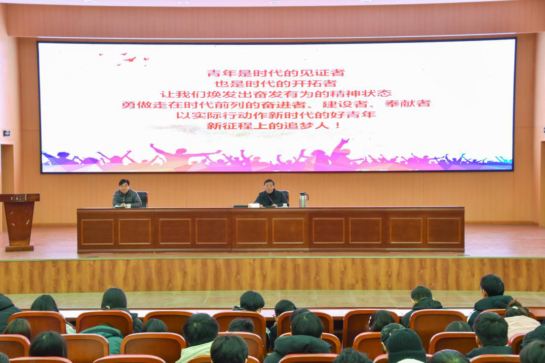为深入贯彻落实习近平新时代中国特色社会主义思想和党的二十大精神,落实落细时代新人铸魂工程,12月14日,副校长赵海彦在教学楼G1-112报告厅为2023级全体学生讲授题目为“做有理想、敢担当、能吃苦、肯奋斗的新时代好青年”的思政课。